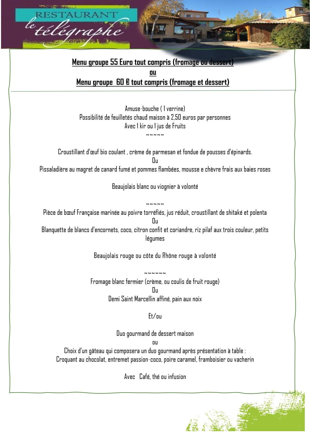 Formule groupe type tout inclus possibilité de formules personnalisées, nous contacter pour plus de renseignement